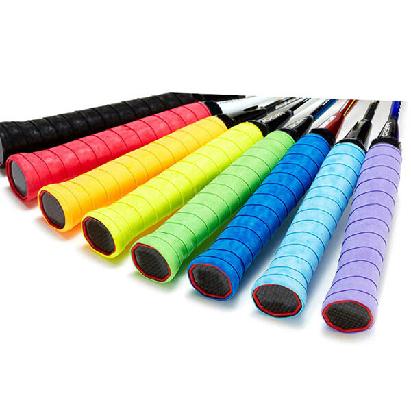 Pegangan atas kami dapat memiliki berbagai desain termasuk embossing dan finishing tapes, serta jahitan pada pegangan atas. Pegangan atas ini dilubangi, lalu ditambahkan tulang EVA dengan menambahkan tulang karet dan kertas berwarna. Dan untuk panjang/lebar/tebal, kami juga bisa membuat sesuai dengan permintaan Anda. Pegangan atas yang kami tawarkan didesain untuk muat di semua raket, termasuk raket tenis.